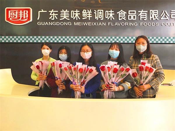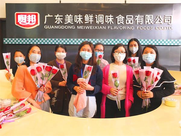 在这个特殊的妇女节,公司领导为集团本部及美味鲜中山厂区、阳西厂区女工送上最特别的节日问候!送上玫瑰花一朵和小礼品一份,望广大妇女姐妹们,在新冠肺炎疫情防控工作中,继续发扬自尊、自信、自理、自强的精神,在复工复产及本职岗位中,开拓创新,展现巾帼风采,贡献巾帼力量,共同创造集团公司更加美好的明天!