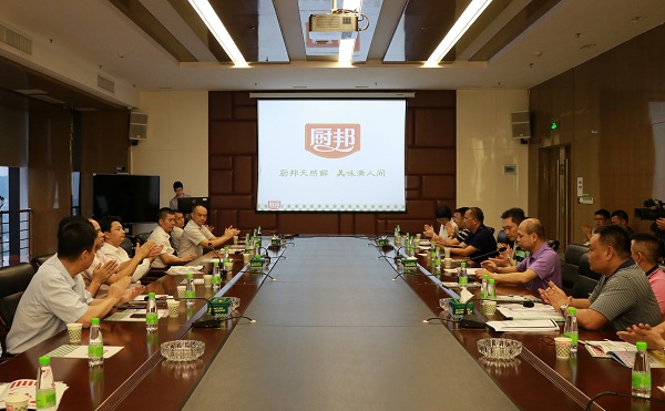 随后,考察团与我方主要陪同领导在会议室进行了座谈交流。座谈会上,美味鲜公司汇报了企业发展历程、经营情况及未来发展规划。张卫华董事长在会上表示,美味鲜公司在阳西县5月10日举办的调味品展销会上发布了公司五年双百发展计划,阳西生产基地是公司实现五年双百发展计划的重要战略依托,目前基地各项在建项目进展顺利,投产后将进一步扩充公司产能,支撑企业未来的跨越式发展。张董还就阳西生产基地建设发展中的实际问题向孙波书记一行进行了汇报沟通。