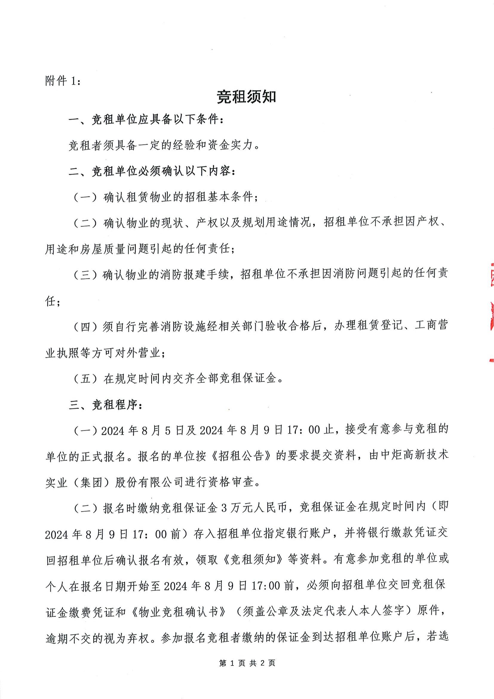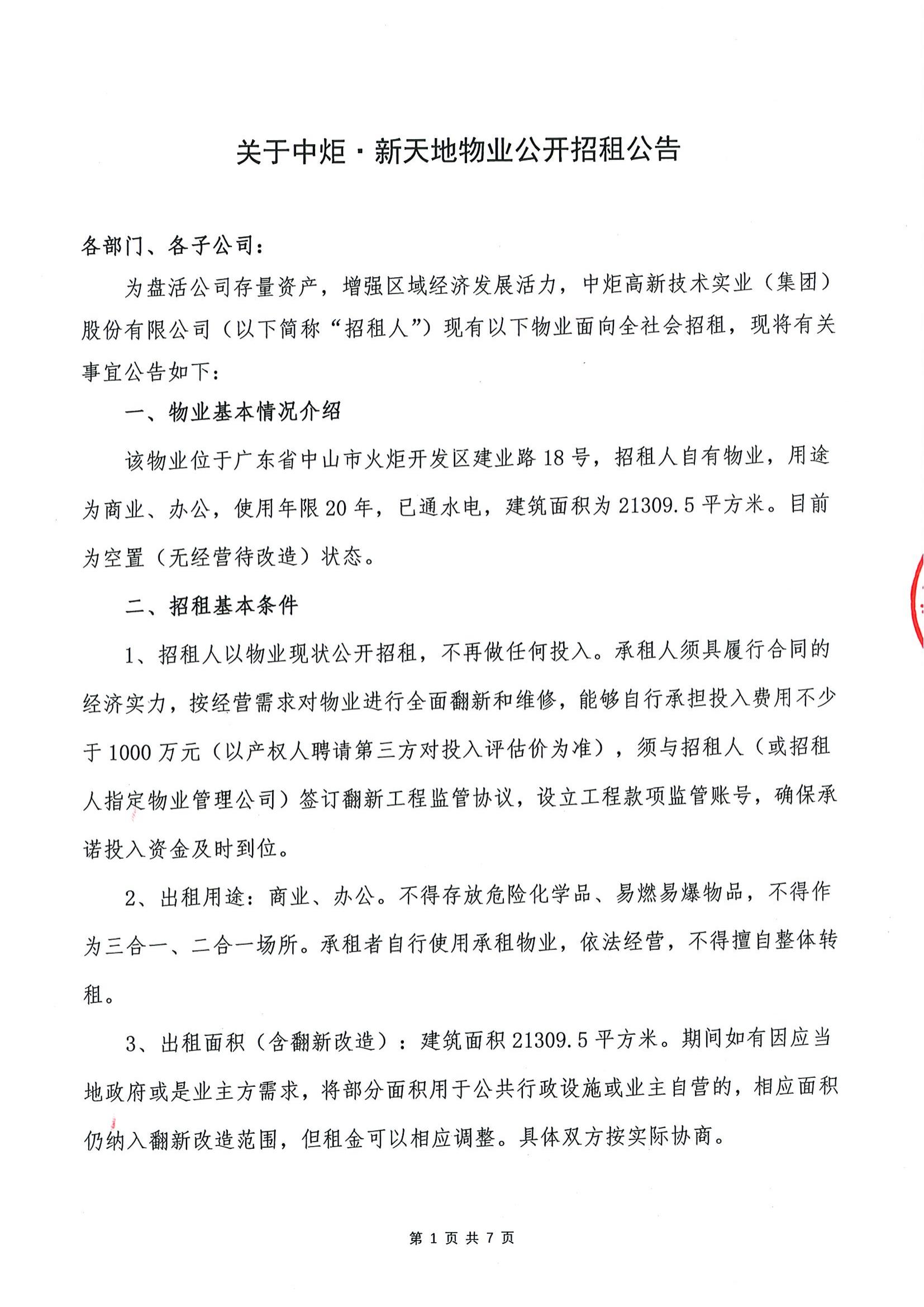关于中炬·新天地物业公开招租公告