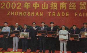 上午10时,招商经贸洽谈会隆重开幕。汤炳权副省长、陈根楷市长分别致辞。葛志斌同志代表我区领取了扩大出口突出贡献奖(见图)。会上,全市安排了51个项目现场签约,我公司领导首批上台分别同东丽薄膜加工(香港)有限公司和日本株式会社F·TECH签署了投资协议书。